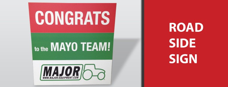 Mayo All-Ireland Signage – no matter where in the world you are, Signwest can produce cost-effective road side GAA ‘Good Luck’ signs for all counties across Ireland. These are manufactured using corrugated board with a full colour vinyl print, offering a long-lasting solution, the sign might come in handy for next years All-Ireland!