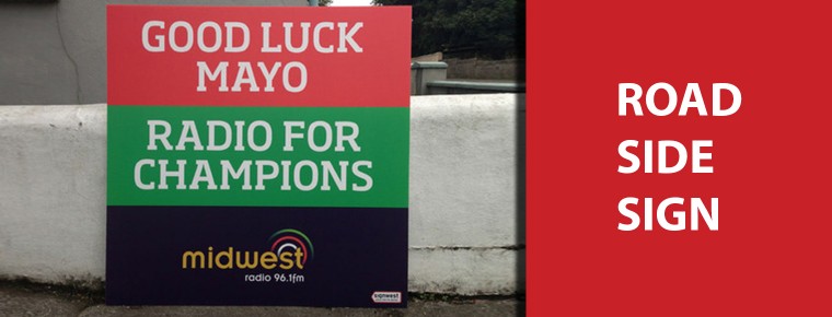 Mayo All-Ireland Signage – Signwest produce cost-effective road side GAA ‘Good Luck’ signs for all counties across Ireland. These are manufactured using corrugated board with a full colour vinyl print, offering a long-lasting solution, the sign might come in handy for next years All-Ireland!