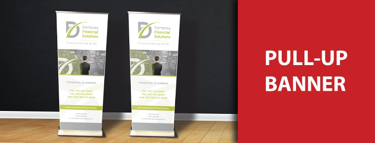 Here are some premium pull up/roll up banners we have recently completed for Dempsey Financial Solutions who are based in Salthill, Co. Galway. As wealth management advisors, they work personally with you and your family. Their first task is to ensure that they fully understand your personal and financial objectives; they can then create a sophisticated financial plan that integrates everything from tax planning and risk management to your investment portfolio and estate wishes.