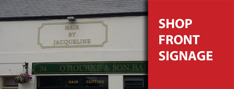 Here is some outdoor shop front signage that consists of raised cut vinyl lettering that we recently completed for Hair By Jacqueline who are based in Ballina, Co. Mayo and offer over twelve years of experience in all hair services, with a great reputation for upstyles and bridal hair it has made them a number one choice for your special day! If you have a shop front that needs some sprucing up why not call us on: 094 938 2000 or email us: info@signwest.ie.