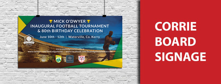 Here’s an 8ft x 4ft corrie board that we recently created for the Mick O’Dwyer Football Tournament that will be taking place between the 10th to the 12th of June in Waterville, Co. Kerry.