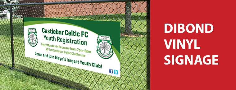 Here is some Dibond Signage that we recently created for Castlebar Celtic F.C. who are based on Castlebar, Co. Mayo, Ireland. Castlebar Celtic F.C. is an Irish association football club based in Castlebar, County Mayo. They currently play in the Mayo Association Football League. They have previously played in both the A Championship and the Connacht Senior League.
