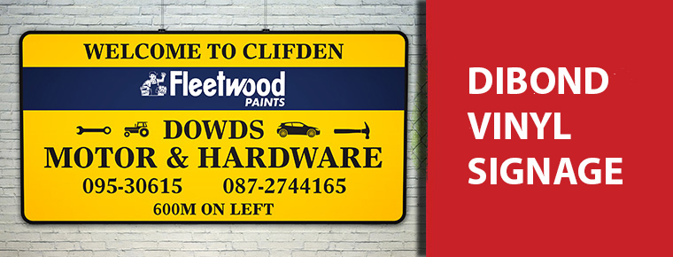 Here is a Dibond shop front sign we designed and printed for Dowd’s Motor & Hardware who are based in Clifden, Co. Galway and are an irish owned business who provide services such as key cutting, paint mixing and advice, rug doctor rental and offer an extensive range of hardware, agri, motor and household items in stock with new stock arriving daily. If you have a shop front that needs that a bit of a revamp why not call us on: 094 938 2000 or email us: info@signwest.ie.