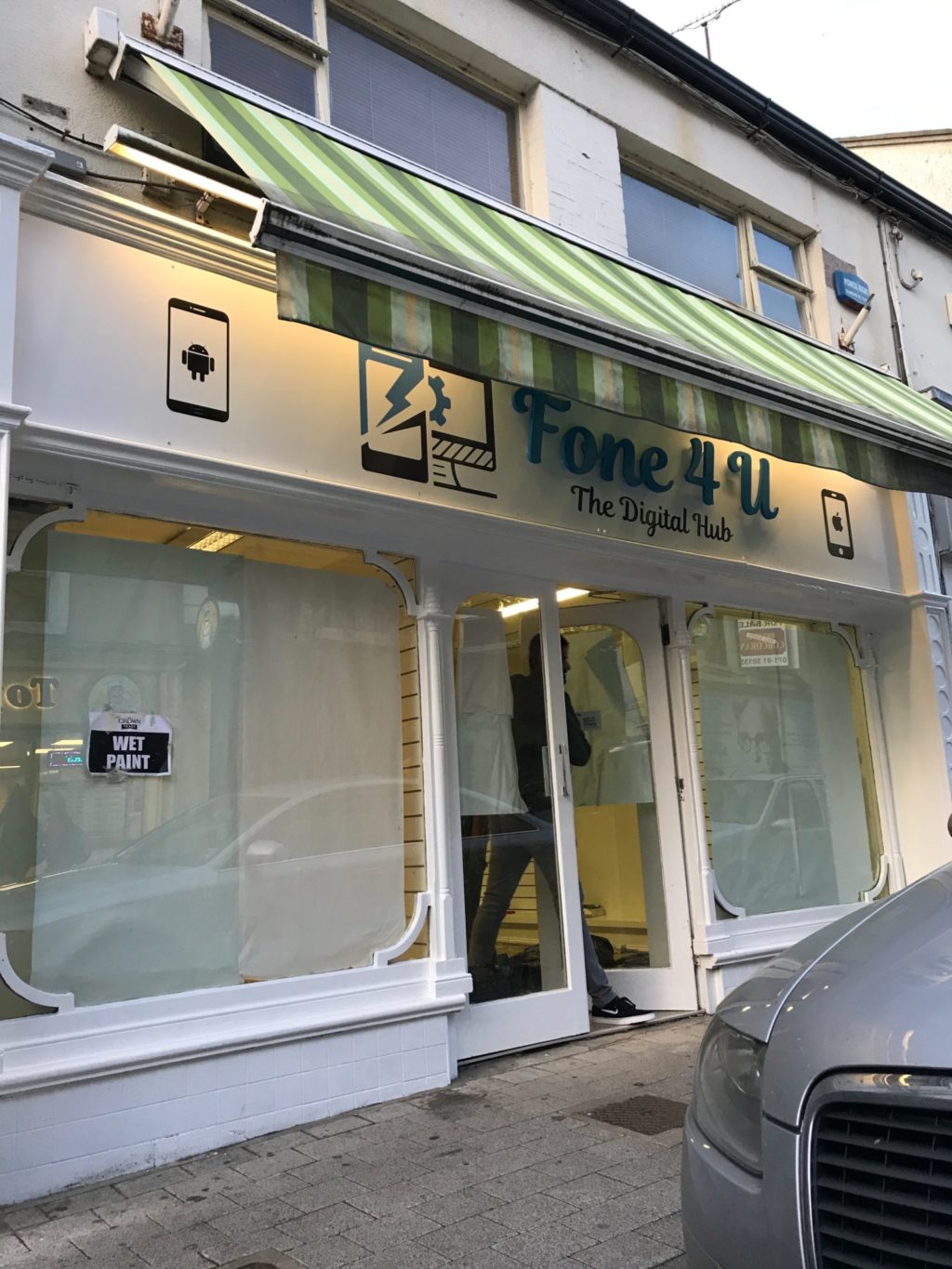 Here is some recently designed and fitted Shopfront signage for Fone 4 U based in Sligo Town. We had previously completed another sign for the company in Ballina company so this is their second store. The designers at Signwest created the beautiful shopfront signage for Fone 4 U previously and they approached Signwest again to update their shopfront look. Our very talented designers created a great looking signage design for them which contains 3-D offset letters which are made from composite Foamex and sprayed which is then mounted on a vinyl fronted aluminium panel. 3-d letters can be finished with any colour of your choice but look great especially in silver, gold or metallic finish. The back of the signage consists of metal and coated with a vinyl. The guys at Fone 4 U are thrilled with their new beautiful shopfront signage. We are very happy to work with them again and hoping to get them back in the future with new projects.